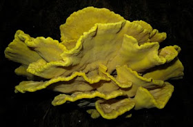 Une touffe de Laetiporus sulphureus (Polypore soufré) sur Quercus robur (Chêne pédonculé)… écrin de quelques perles.